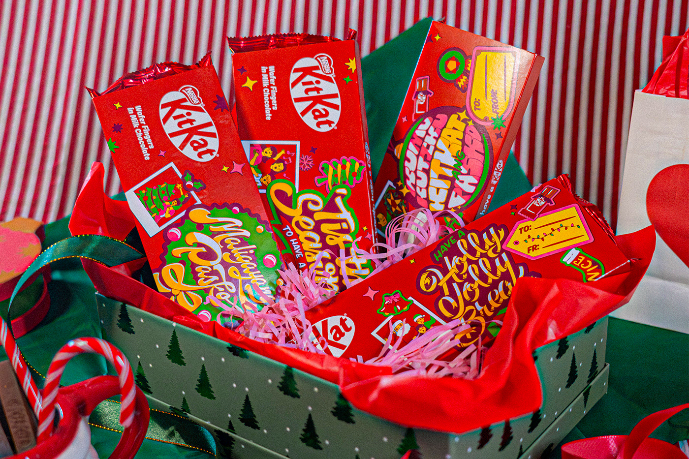 KitKat Philippines invited me to develop four different Christmas-themed packaging sleeves for their 102-gram packs. The brief is vibrant, festive, and modern yet familiar.